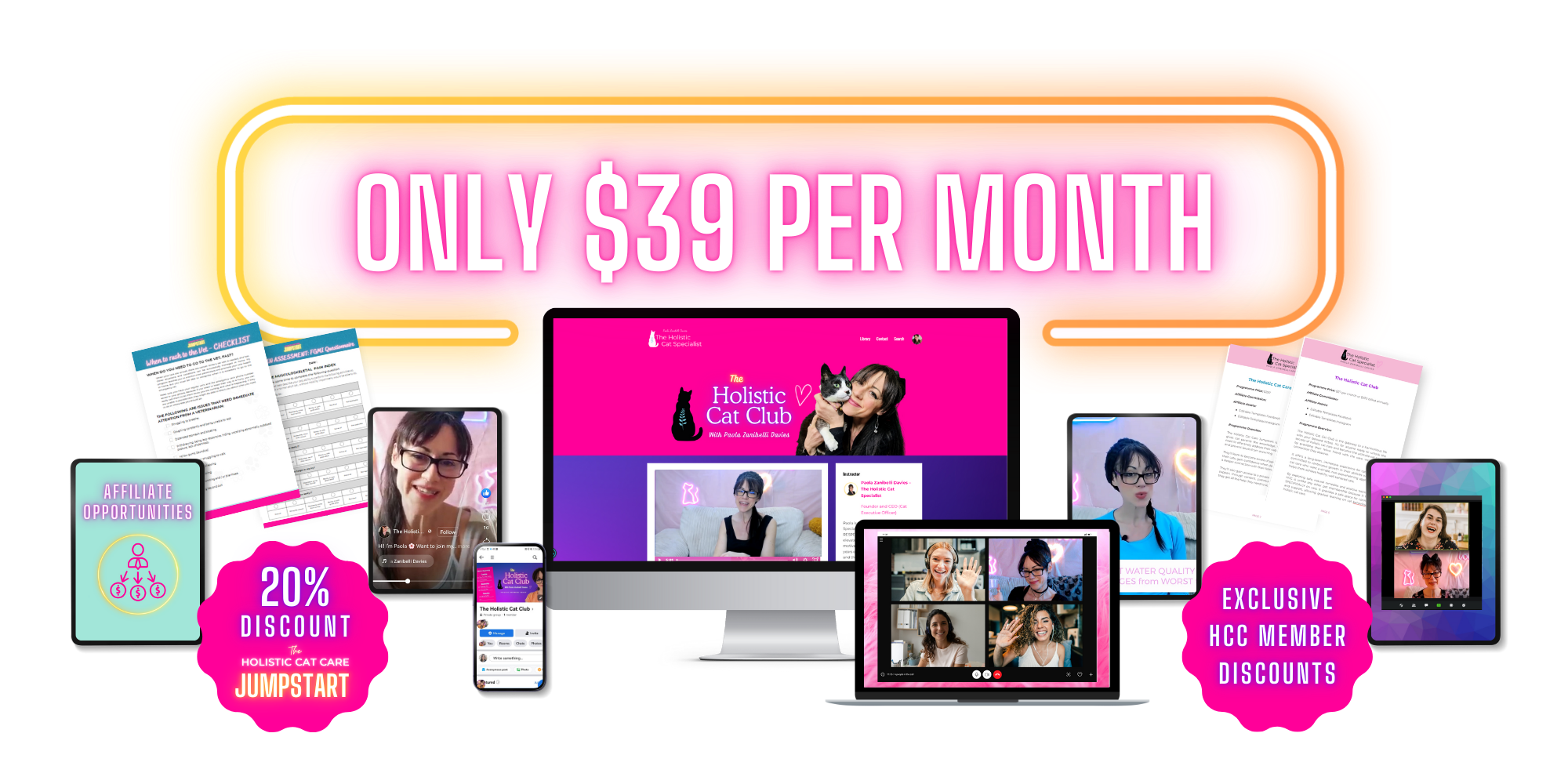 - A community of like-minded peers who will support and encourage you as you move along the path of holistic cat care 💜